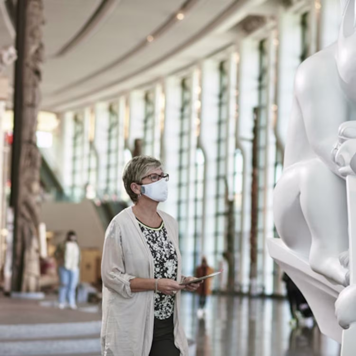 Utilize the museum app for interactive maps, exhibition summaries, images, and virtual tours in multiple languages.